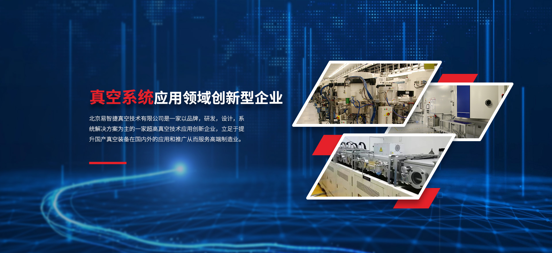 北京易智捷真空技術有限公司成立于2021年,位于首都北京大興區中國(北京)自由貿易試驗區高端產業片區,是一家以品牌,研發,設計,系統解決方案為主的一家超高真空技術應用創新企業。立足于提升國產真空裝備在國內外的應用和推廣從而服務高端制造業為企業使命,由多名真空行業專家以及多位應用領域從業者聯合發起組建,涉及服務領域包括真空獲得,真空標準件,真空系統設計,維護集成等服務,涵蓋半導體,新材料,光電顯示,表面涂層,航空航天裝備,實驗室設備等。生產制造分布于東北老工業基,長江經濟帶等多個地區,可滿足多個行業的需求供應,品類齊全,團隊經驗成熟,堅持以需求為導向,以超過滿足客戶需求為工作準則,簡化高效,智慧分析,便捷合理的企業文化,為各行各業提供優質服務。